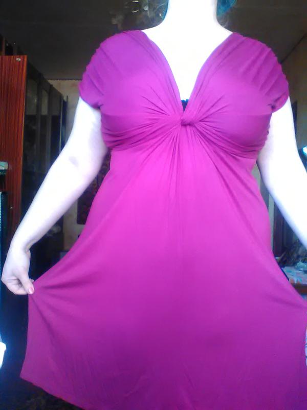 1 + 1 =3 🎁 В подарок идет вещь с наименьшей стоимостью из избранных вами🛍️. Приятный трикотаж,темно-фуксийного цвета (спокойней, чем на фото),может подойти и беременной за счет складочек под грудью, очень хорошо тянется. Длина-103см,грудь-120см и более,стегна-112 см(в спокойном) Вещи без запаха, покупались для себя, разгружают шкаф!