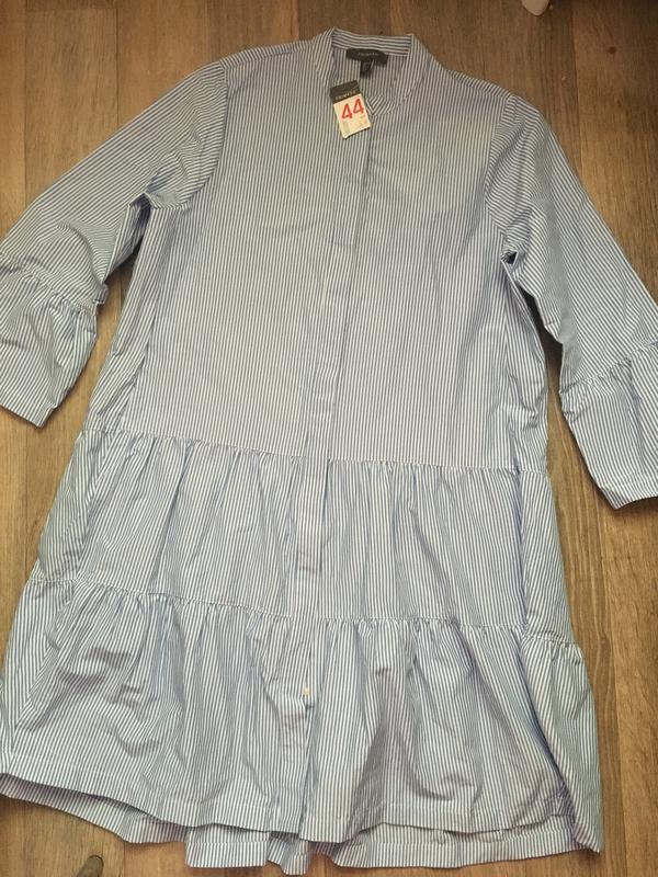 новое женское платье в размере 44, идет на L а то и на XL ткань чистый хлопок не тянеться. в мелкую полоску замеры плечи 40 грудь 54 талия 56 длина 102 рукав 56 ширина рукава 19