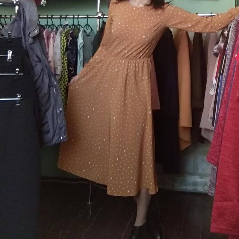 сукня яскраво гірчична в принт горох пояс резинка довгий рукав