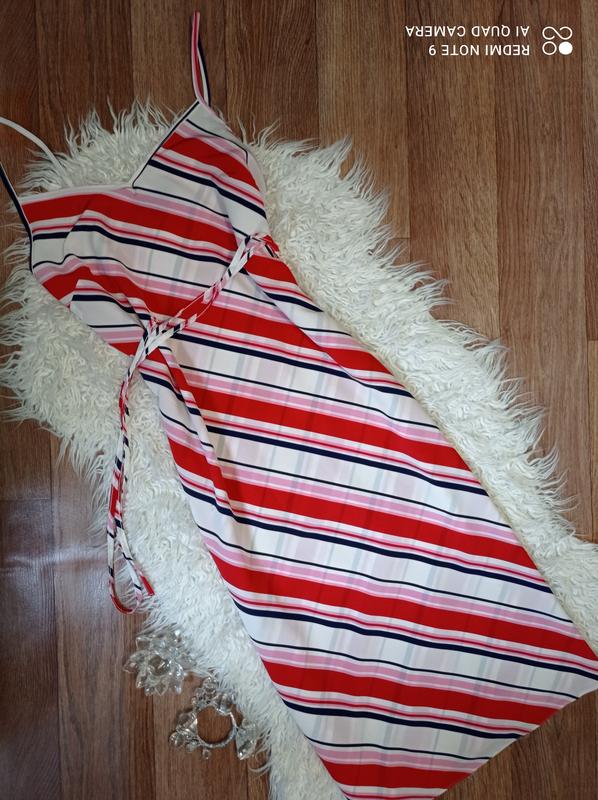 Платье в полоску/трапеция/разрезы по бокам 29см пояс шнурок Размер указан 10 ДИ-111 ПОГ-43 ПОТ-46 ПОБ-49 Состав:100%полиэстер Новое без бирки