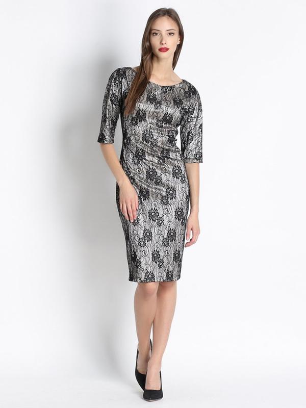 Нарядное платье приталенного силуэта длиной до колен, Имитация кружева на атласе. Модель с горловиной-лодочкой и коротким цельнокроенным рукавом. Для удобства надевания на спинке расположена застежка-молния. Ткань практически не мнется, не просвечивает. Состояние нового, одет один раз. Размер S, но и М будет хорошо.
