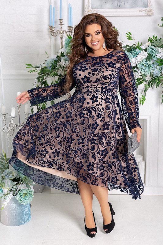 🔥 Платье 🔥 🔺 Арт. 560-626 ▪ Категория: #Платье ▪ Материал: креп дайвинг + турецкий флок на сетке+трикотажная подкладка. ▪ Цвет: черный,темно синий и чёрный с блесточками ▪ Размер: 48-50, 52-54, 56-58, 60-62 ▪ длина изделия спереди: 112см. длина изделия сзади:136см ▪ В наличии!