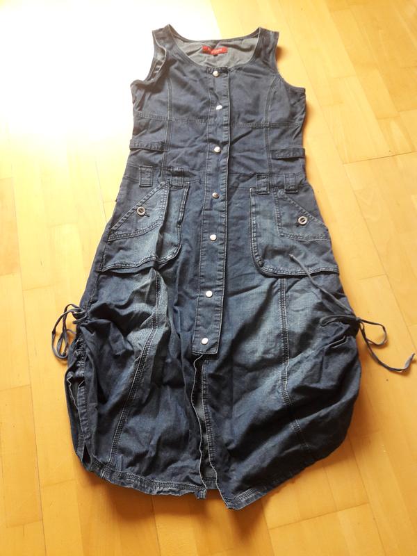 Джинсовое платье - сарафан на кнопках размера М. Бренд Marc Lauge. ПОГ 49см, ПОТ 44 см, ПОБ 59 см, длина 120 см.