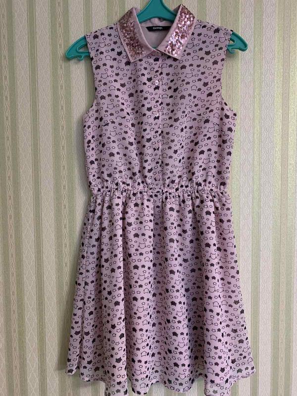 Состояние идеальное На 13-14 лет На рост 158-164 см Розового цвета с котятами Ворот паетки До талии застегивается на пуговицы Талия на резинке Есть петельки для пояса На подкладке Замеры Плечи 34 Пог 43 Пот 33+ Длина 84