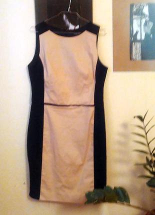 Очень стильное платье футляр-карандаш. 46-48 размер украинский. Абсолютно новое. Бирки срезаны, но ни разу не надевалось. Надето на рост 173. Цвет пудра с черным. Камера сильно искажает, в жизни цвет очень насыщенный. Преимущество этого платья в том, что там идет довольно плотный стрейч. Параметры производителя 48размер - ПОГ-96, ПОТ-75, ПОБ-102. Надето на ПОГ-104, ПОТ-86, ПОБ-106