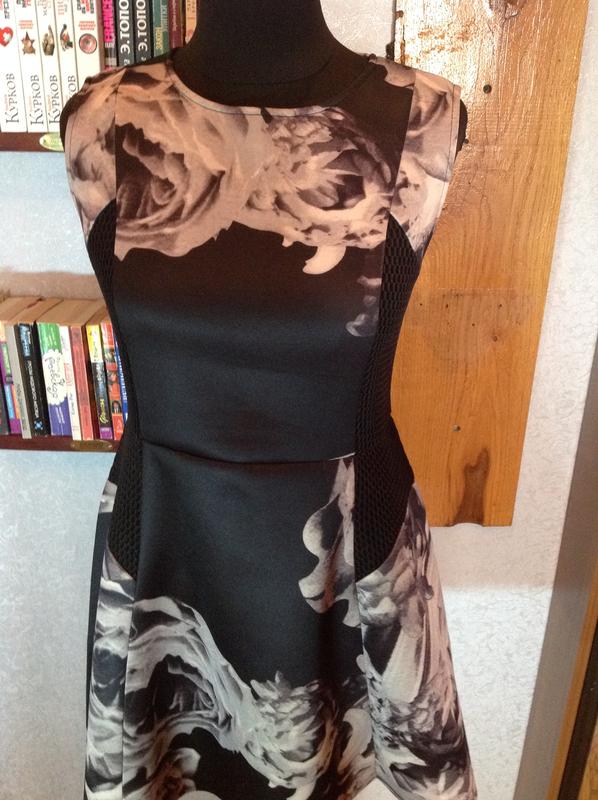 Платье из трика, бренда Jaune Rouge, р. 46. Не много о ткани трик. Трик это лёгкая трикотажная ткань. Она отлично держит форму, эластичная, имеет гладкую иногда блестящую поверхность. Такой материал хорошо впитывает влагу и быстро сохнет. Пятна на нём легко отстирываются, а гладить его вообще не нужно. Состав: 65% полиэстер, 5% эластан. Мерочки: от проймы до проймы 45см + выточки, ПОТ 42см, ПОБ 64см, длина по спинке 82см. Сзади длинная молния до середины бёдер. По бокам вставки из ячеистого материала. Отлично садится по фигуре, тянется, но не сильно, универсальная вещь.