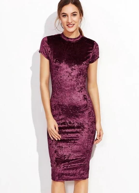 шикарное бархатное платье, длинна миди, короткий рукав, застёжка молния на спине, цвет насыщенный глубокий бордово-малиновый в наличии размер L, на параметры ог92-95, талия 75, об96-100, хорошо тянеться