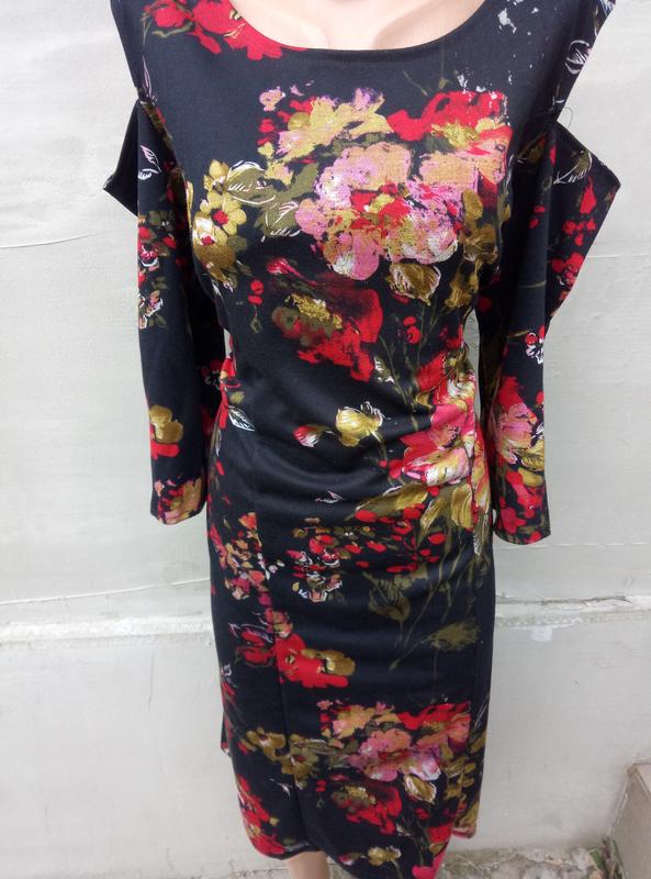 Платье с цветами оголённые плечи отлично садится на фигуре ткань тянется