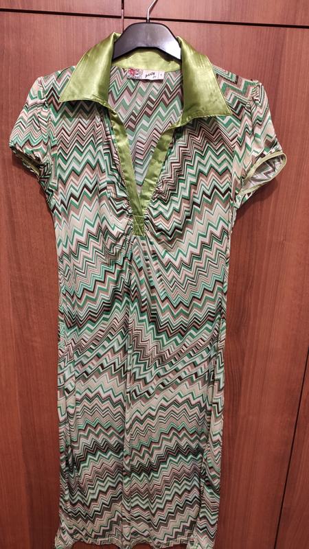 Відмінне плаття з тканини масло. Дуже приємне до тіла і не жарко влітку. Трохи з'їхався комір, але особливо не кидається в очі і під волоссям, якщо довгі, не видно. Довжина по коліна