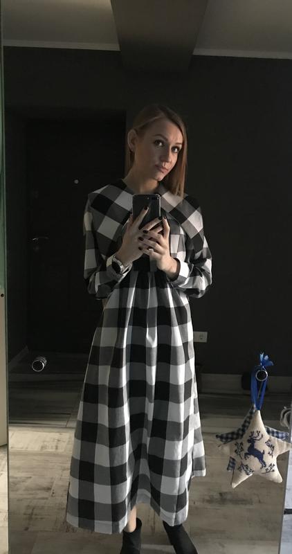 Трендові плаття в клітку оверсайз. Ззаду вільний покрій. Дуже гарний комір, сорочкова тканина