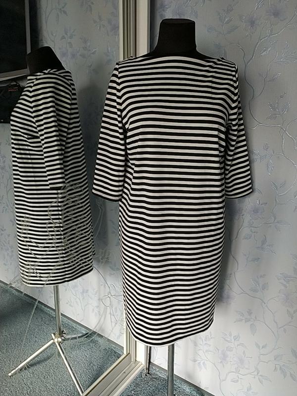 Красивое трикотажное платье в полоску. Рукав 3/4 Плечи- 38см ПОГ- 52 см ПОБ- 54см Рукав-42см Длина платья- 89