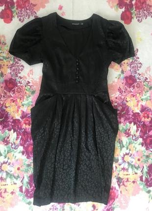 Красивое чёрное платье , сбоку замочек,карманы,рукава фонарики
