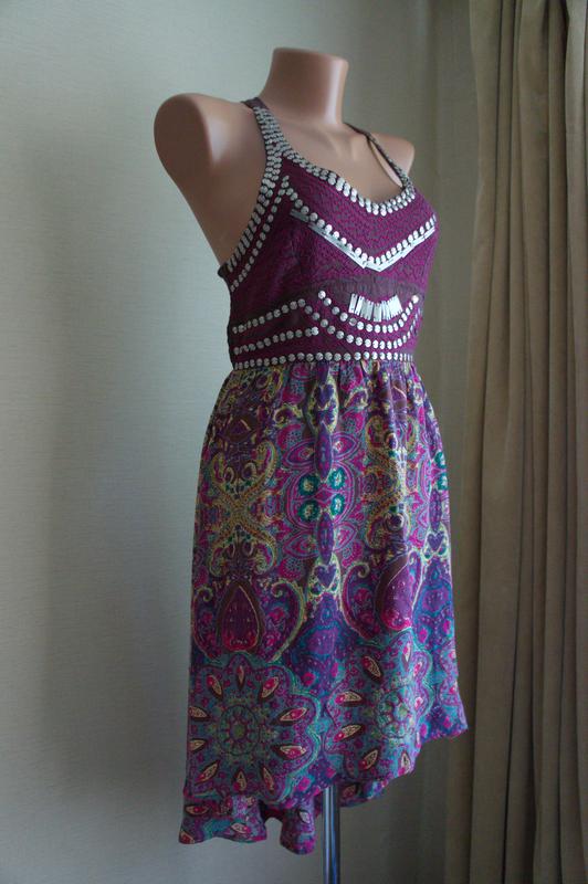 Очень эффектный сарафан производства индии.Полностью натуральная ткань.Хорошо садится по фигуре с учетом резинки на спине.Длина с бретельками 102 см,без бретелей 82 см,поб груди 42 см (тянется),ширина по бёдрам 55 см,ширина наза 81 см.
