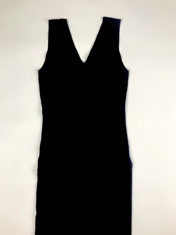 Чёрное платье длиной ниже колена с разрезом сзади. Очень приятная, увесистая ткань. Состояние нового, надевалось 1 раз. Хорошо тянется и садится по фигуре. Можно надевать с водолазкой и носить в более прохладную пору.