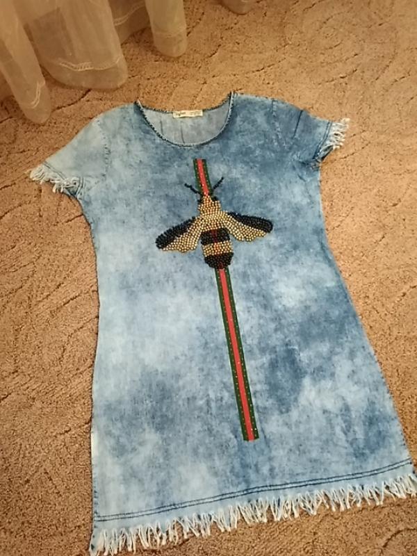 платье мягкий джинс производитель Турция красивое,смотрится шикарно приятная ткань к телу покупалось дорого нету одного камушка цвет на тон темнее(не передаёт телефон)