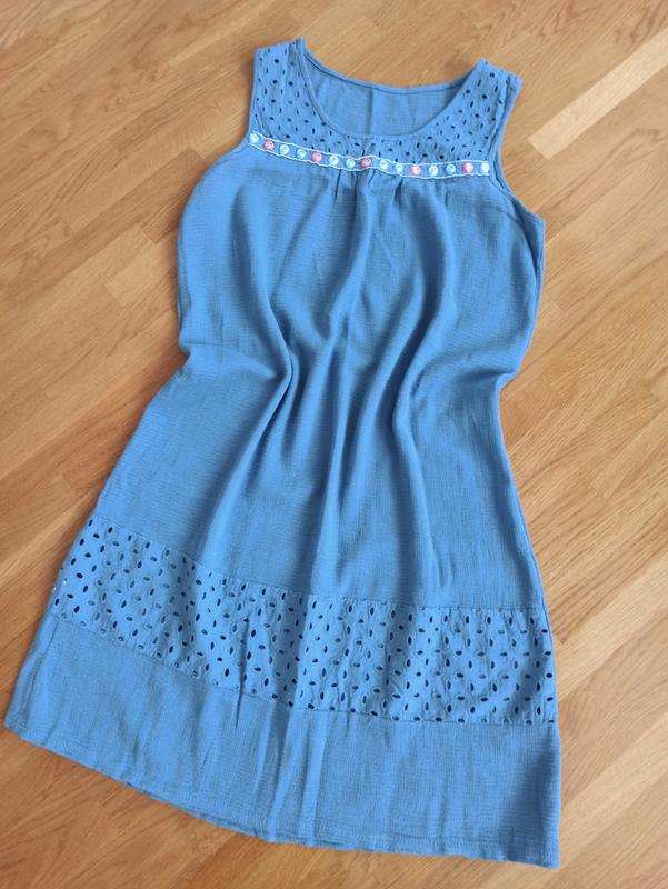 Літнє плаття з натуральної тканини. У складі бавовна та льон. Виробник Італія. Легке та не смаженні. Вільного крою. Також можна добавити тонкий пояс на талії. Виглядає дуже гарно та святково. Стан ідеальний Заміри ПОГ 54см, довжина 98см.