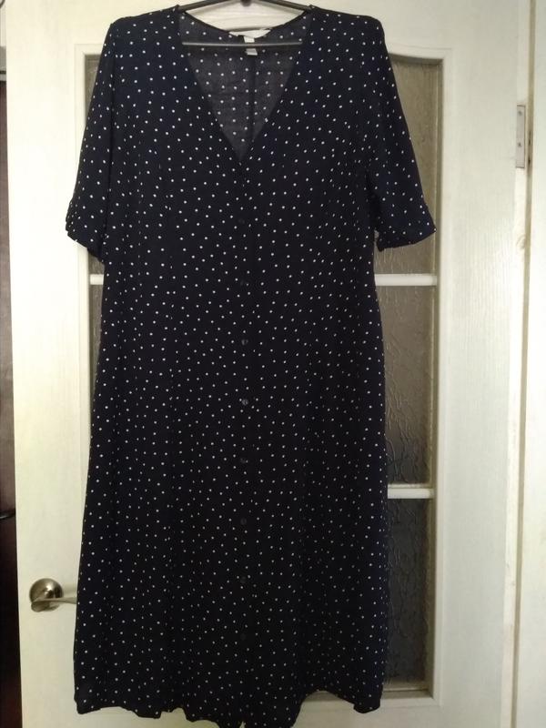 Новое, визкозное платье в горох Застёгивается на пуговицах Длина - 110 см Ширина от подмышки к подмышки - 52см