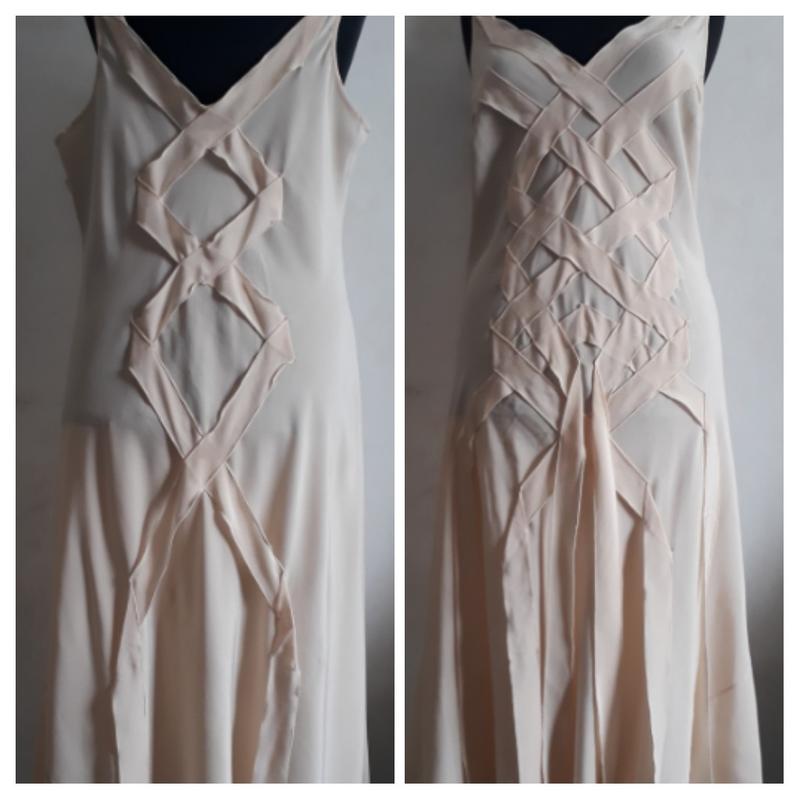 Изящное дизайнерское платье Fenn Wright Manson Размер 18 ткань: 100% шелк цвет: слоновой кости Замеры: Длина 114см Ширина полуобхват грудь/ бедра 44/50 см Ткань подвижная, поэтому могут быть не точности. Хорошо садится по фигуре. Крепление деталей с изнанки, смотрите последнее фото. Состояние новой вещи.