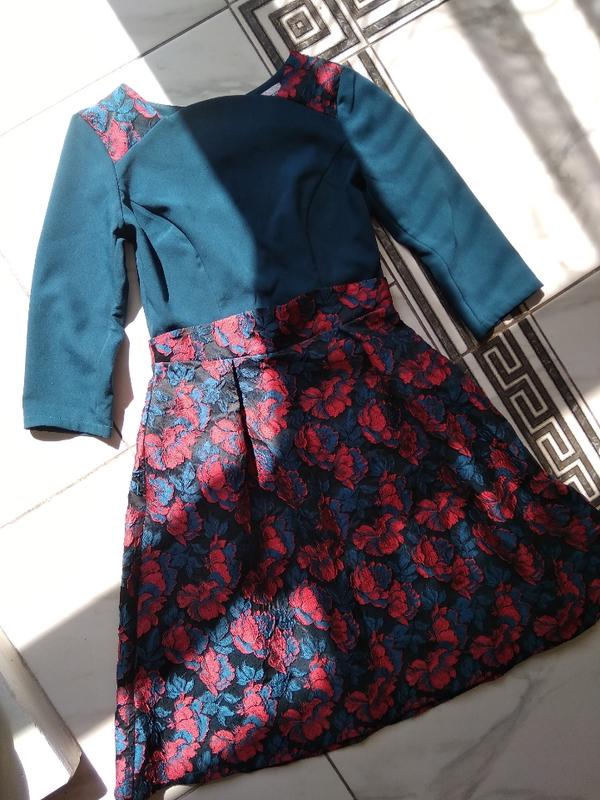 Нарядне плаття, з квітковим принтом, підкр слюю талію, рукав 3/4, взаді на замку. Український виробник Pink Довжина від плеч 94 см довжина пліч 36 см поГ 40 см поТ 34 см довж рукава зовні 42 см, з середини 30 см колір верху темно зелений😍 Без дефектів, при потребі скину ще фото , пишіть 🌷 висилаю укр або НП