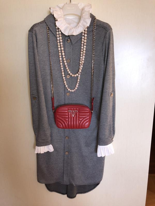 ✔️модная клеточка « гусиные лапки» ✔️спереди планка декоративная, не расстегивается ✔️рукава подворачиваются на 2/3, и застегиваются на пуговицу ✔️спереди короче, чем сзади ✔️воротник и манжеты для образа, не продаются