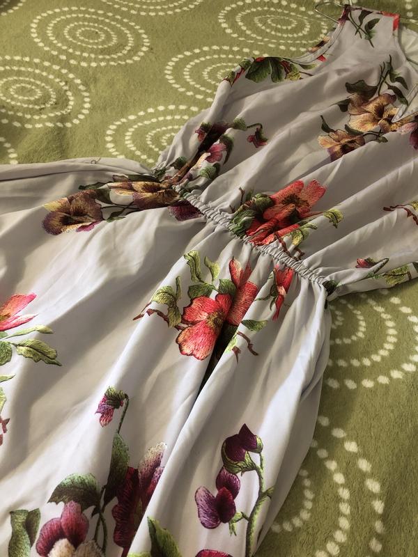 Красивое, лёгкое платье с цветочным приветом. На талии резиночка. Размер С. Грудь 84 см, длинна 109 см.