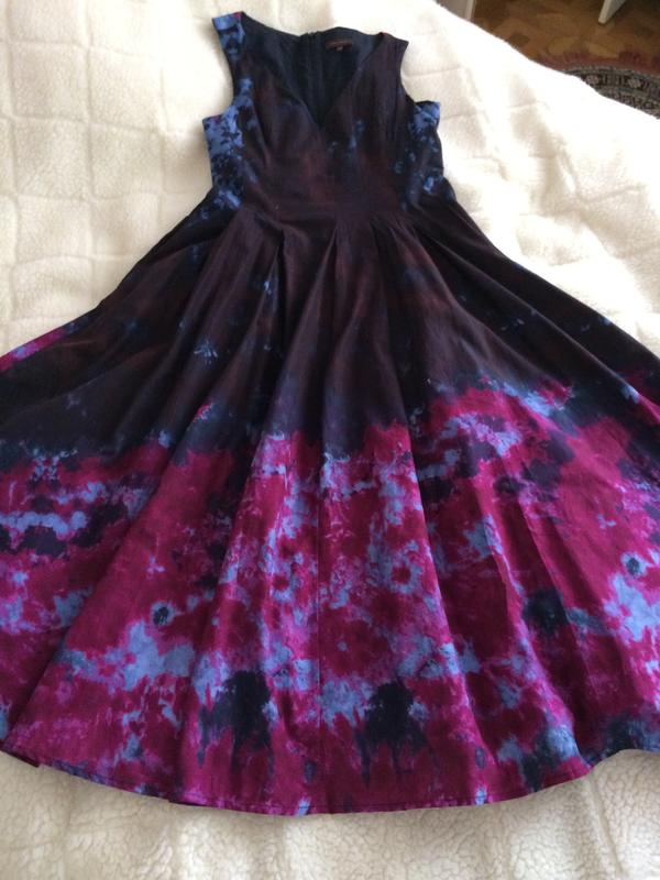 Очень красивое платье от одного из самых известных испанских дизайнеров, ткань-тонкий хлопок, с красивыми переходами, на подкладке, сзади на молнии, в отличном состоянии, 8 из 10, размер S, длина ниже колена