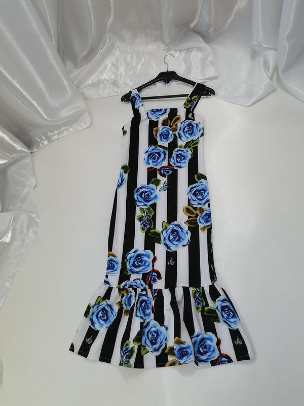 Очень красивое платье миди с воланом модную полоску яркими цветами розами
