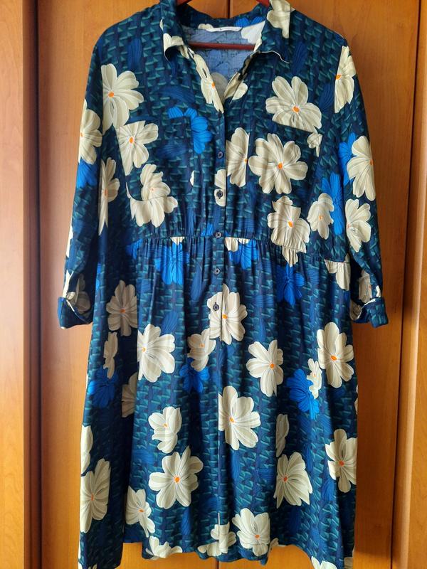 платье новое, без броков.Ткань натуральная,вискоза (на вид как тоненькая байка). Рубашечный фасона, с карманами на груди, на рукавах подхват.вказанный 20 размер европейский, но соответствует больше, чем оверсайз 16 -18 европейский (на наш 50-52-54).Ориентируйтесь на замеры: пог-60см,пот-58см(свободный крой), побобы-свободо,короченый рукав-49см, длина изделия-99см по спинке.(лучше на рост 168 -174см)