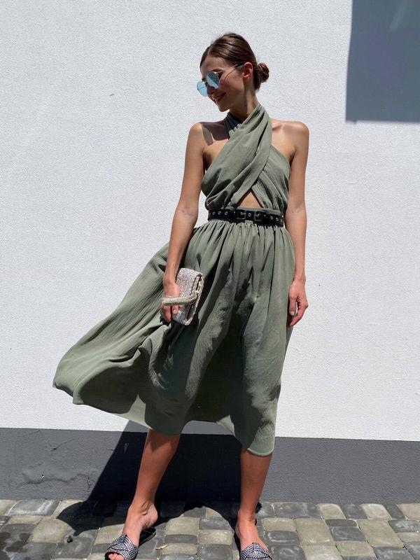 Сукня🖤 Мод: 247 ▫️Пояс в комплекті ▫️Розміри м ▫️Матеріал: креп-коттон ▫️Колір: молоко, чорний, оливка ✂️Виміри Мод: 247 С Груди вільна Талія 66-70 Стегна вільні М Груди вільна Талія 70-74 Стегна вільні Довжина від талії 83