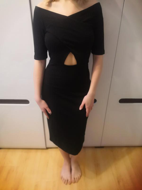 Модное чёрное платье с открытыми плечами