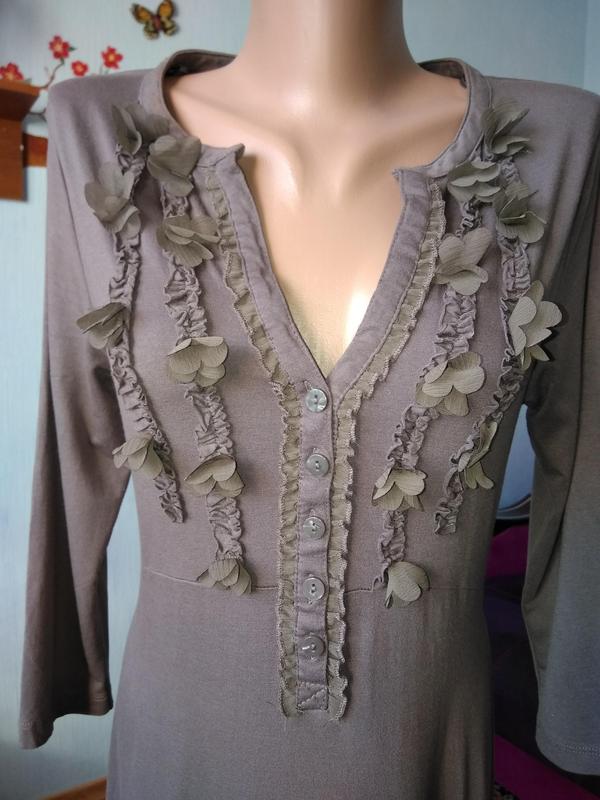 Нежное вискозное платье с милыми цветочками. Нюансов нет. Одето на р. 44верх, 46 низ. Дл. 100, пог 45 , пот39-45, поб 50 , рукав 3\4. Отправка любой почтой. С БЕЗОПАСНОЙ ПОКУПКОЙ НЕ РАБОТАЮ