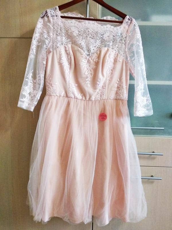 В наличии платье Chi Chi London, размер 14 uk Замеры: ПО в поясе 39 см, длина рукава от плеча 46 см, плечи 39 см, ПО под руками примерно 47 см, длина нижней юбки 63 см, верхней 65 см. Замок сбоку, цвет очень красивый и нежный) Пересылка новой почтой и Джастин, наложка есть. Самовывоз ул Голосеевская Киев