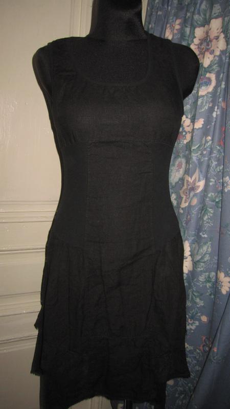 Платье черного цвета,лен,сзади и по бокам-трикотаж.хлопок.ПОГ41.ПОТ 33.ПОБ 60.,длина 100см
