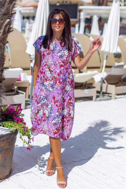 арт125 стильное платье ЛЯЛЯ выполнено из натуральной ткани штапель!круглая горловина,рукав кимоно, два вшивных кармана,к низу платье собрано на скобочках.платье слегка бочковидной формы! четыри рвзмера: замеры по изделию 50 52 54 56 ог 100 104 108 112 от 104 108 112 116 об 120 124 128 132 длина 118 ШР 40 42 44 46 на фото цветочный принт на сиреневом фоне есть ещё расцветки смотрите на моей страничке!