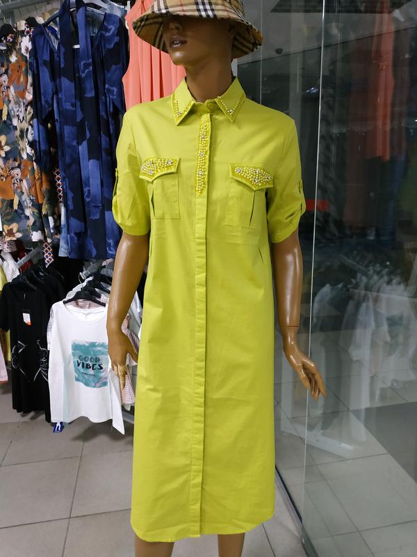Сукня Трохи розтягнути Кишені в бічних швах З поясом Довжина виробу - 117 см Жовте 42-44 Кавове 46-48