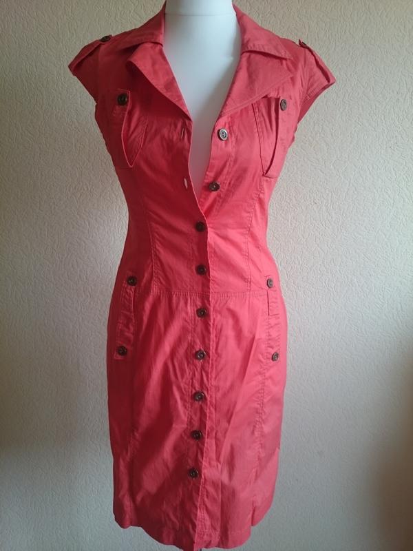 Платье-Сарафан кораллового цвета на пуговицах, одела 1 раз в Париже, на 44-46р. очень стильное. дефектов нет. параметры 164-88-96