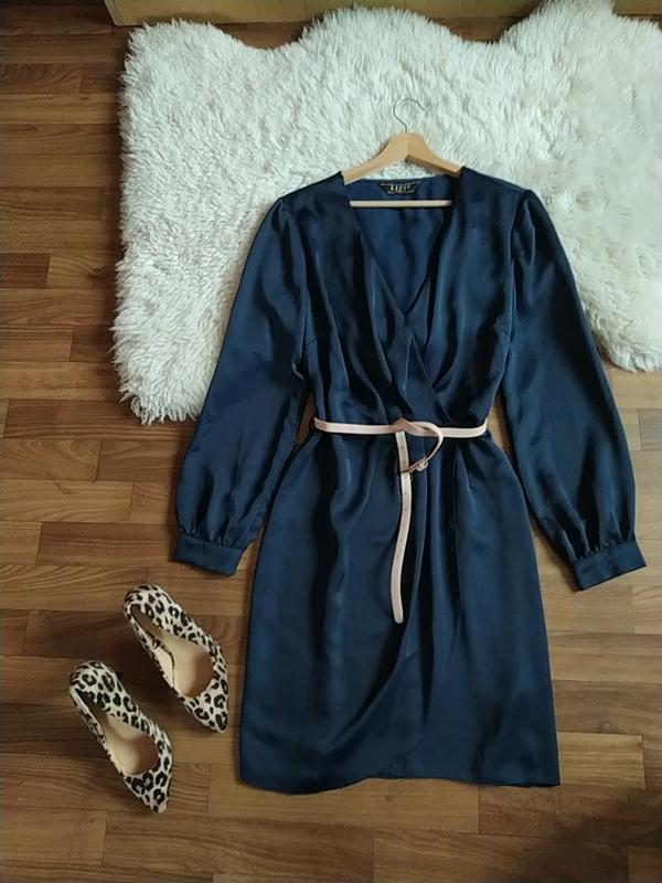 Классическое платье с запахом.. Синий атлас. Новое.