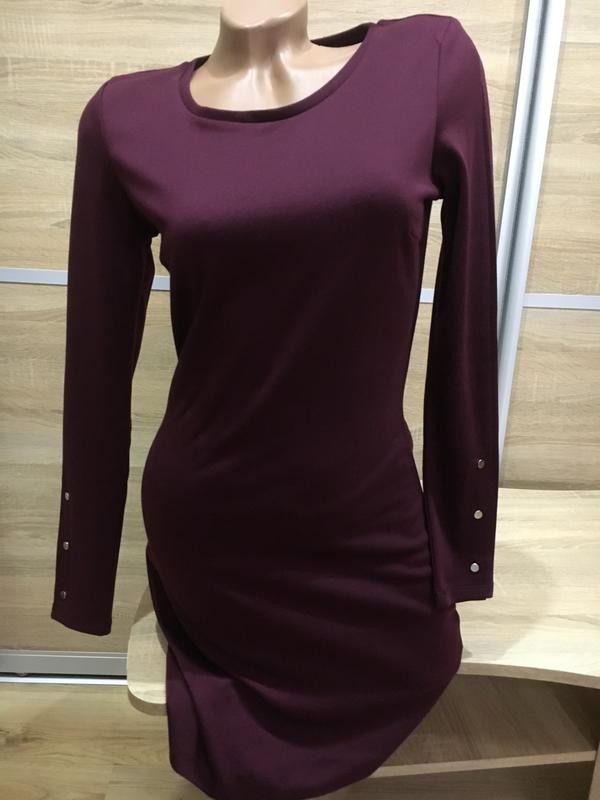 Нова (без бумажноі бірки) сукня з плотного трикотажу насиченого кольору сливи. Має досить вузькі рукава, тому на обьємні руки не підійде. (ширина рукава в районі ліктя (пів обьєм - 11 см, пройма - 21 см) Параметри манекена : 90-60-90 Орієнтуйтесь на заміри👇 Заміри: Довжина від плеча - 90 ПОГ - 44/52 Пот - 36/42 ПОБ - 46/52 Довжина рукава -.60 Ширина плечей - 37/38 Заміри в спокійному/розтягнутому стані