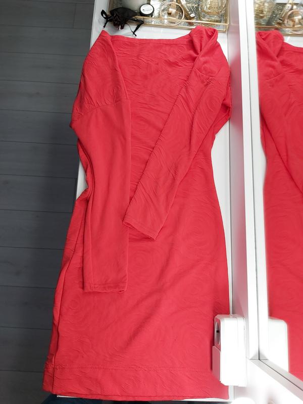 Кораловое платье с рельефными розами