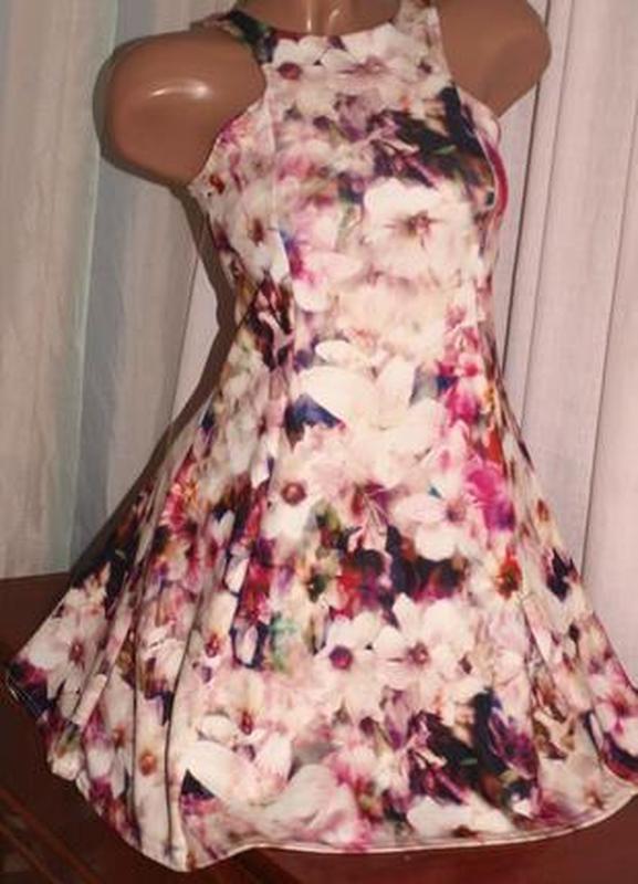 Красивое цветочное платье (хs замеры) плотненькое, немного тянется.