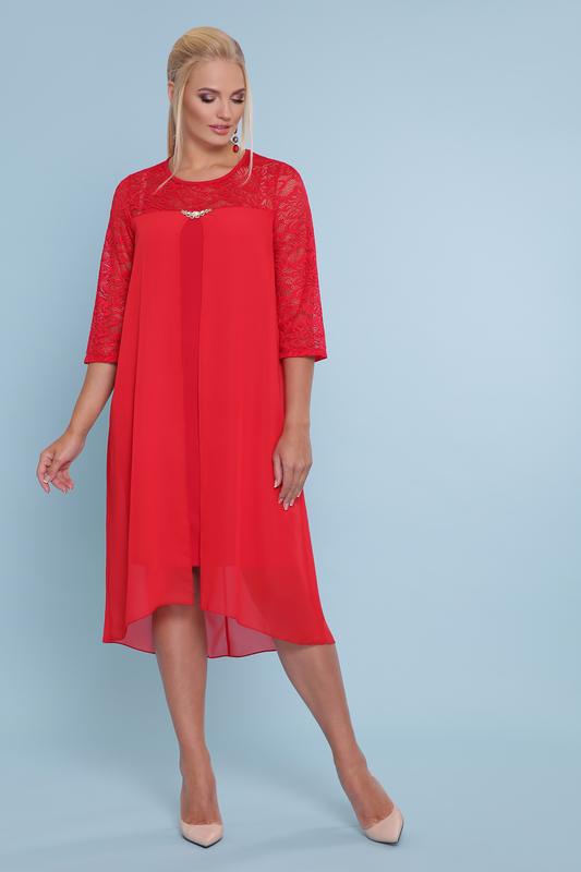 Є наложка Состав: креп-дайвинг + гипюр плотный + шифон (100% полиэстер) Растяжимость: средняя Размерная сетка модели: XL, XXL, XXXL, 4XL Параметры: длина изделия (основная часть): 92 см, длина шлейфа: 112 см. Длина рукава: 45 см. Для всех размеров. Рост модели на фото - 177 см. Обхваты: 96-74-106. На модели размер XL. ОПИСАНИЕ В стильном синем платье легко привлекать восхищенные мужские взгляды: облегающий силуэт с зауженным подолом, эффект многослойности, создаваемый струящейся накидкой из шифона, пикантная кокетка и треугольный вырез на спинке по-настоящему завораживают. Рукав и верхняя часть лифа выполнены из плотного фактурного гипюра. А пришивная брошь придает всему образу нарядное настроение. Выбирайте батальное платье на торжество с black tee дресс-кодом. Базовый слой модели выполнен из креп-дайвинга, поэтому вы не будете чувствовать себя скованно в свободе движений. Логично завершит аутфит пара классических лодочек и неброские украшения. 47733