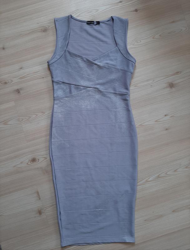 Красиве,сіре платтячко міді,гарно лягає по фігурі бренду boohoo🤍 Стан ідеальний, без дефектів, тільки блиск по платтю присутній не всюди,не знаю чи так має бути,але купила його вже таким. Розмір S ,можна XS, матеріал тягнеться 95% поліестр, 5% елестан При потребі можу зробити додаткові фото або написати об'єми речі, звертайтесь)