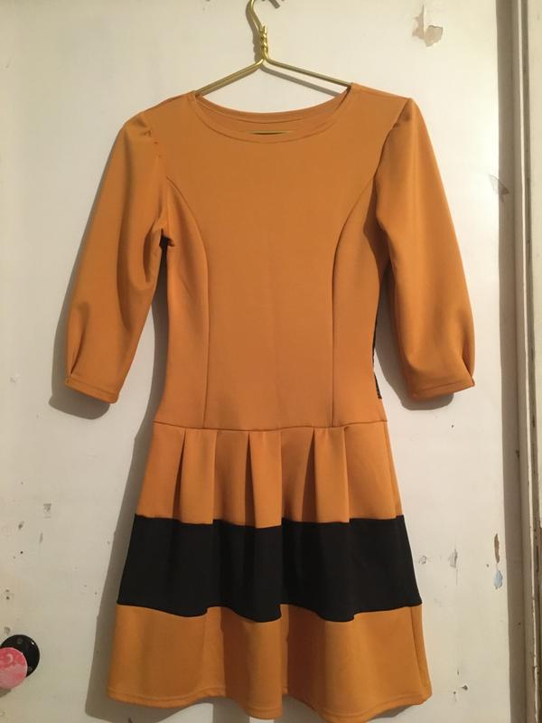 Сукня з цупкої мʼякої тканини, та мереживом на спинці. Є ґудзик на шиї. Вкорочений рукав.