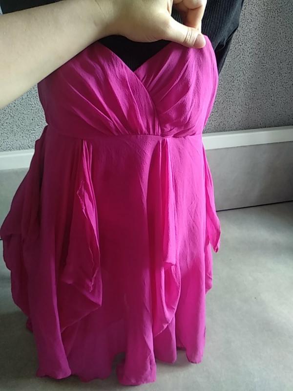 Шикарное платье грудь на корсетной утяжке,ткань шелк,цвет фуксия, состояние идеальное.пог 43,пот 39,длина 86.
