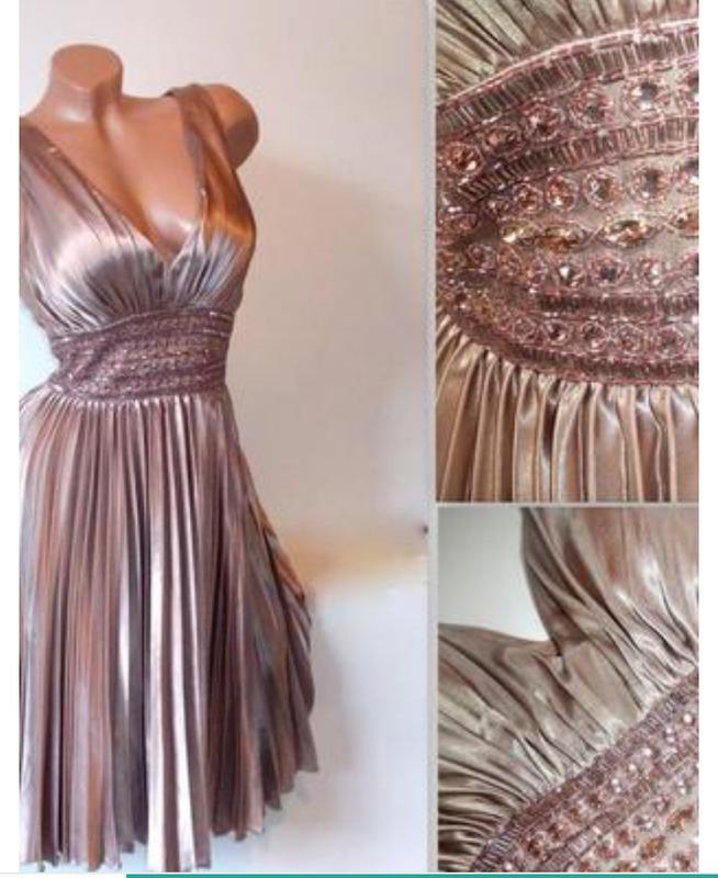 Ефектне вечірню /випускну сукню дивовижного кольору, прикрашену камінням, спідниця плісе розмір - М довжина - 101 ПОГ - 44 (+втсавки для грудей) ПІТ - 35 матеріал як щільний атлас, виглядає шикарно і дорого верх на підкладці + чашечки (чудово сяде без білизни) спідниця на підкладці