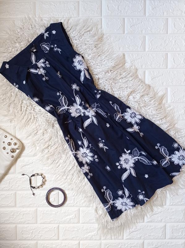 Платье с вышивкой в цветочный принт,есть шлейки под пояс, молния сбоку-40см Размер указан 14 ДИ-88 ПОГ-48 ПОТ-42 ПОБ-59 Низ-66 Состав:100%котон Новое без бирки