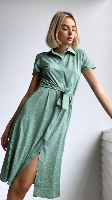 2021 collection пудра —————— ▪️Женское платье « Софт горох» Цена - 383 грн Ткань - софт Размер - 42-44; 44-46 Цвет - чёрный красный олива лило Особенности - платье ниже колен, с воротничком, на пуговицах , под поясок
