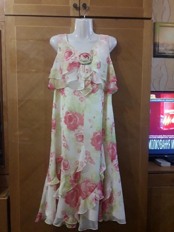 Абсолютно новая вещь от Jacgues Vert с бумажной биркой . Верх : красивый шифон в нежный цветочный рисунок. Внутри атласная подкладка. На бирке размер 14. Замеры делали внутри : Полуобхват груди сзади 52 см , спереди 56 см.. Полуобхват под грудью сзади 44 см , спереди 52 см. Полуобхват по бёдрам 58 см , Полуобхват по низу сзади 118 см , спереди 114 см. Плечи 5 см. Ширина между плечами 38 см. Высота по спине от плеча у горловины 112 см , от подмышек 90 см , по переду по середине 98 см. Застегиваеться на молнию сзади. 100% полиэстер. Камера искажает цвет, ближе всего третье фото. ❗Доставка Новой или Укр почтой за счет покупателя. ❗Отправим после полной оплаты на карточку Приватбанка. *01807*