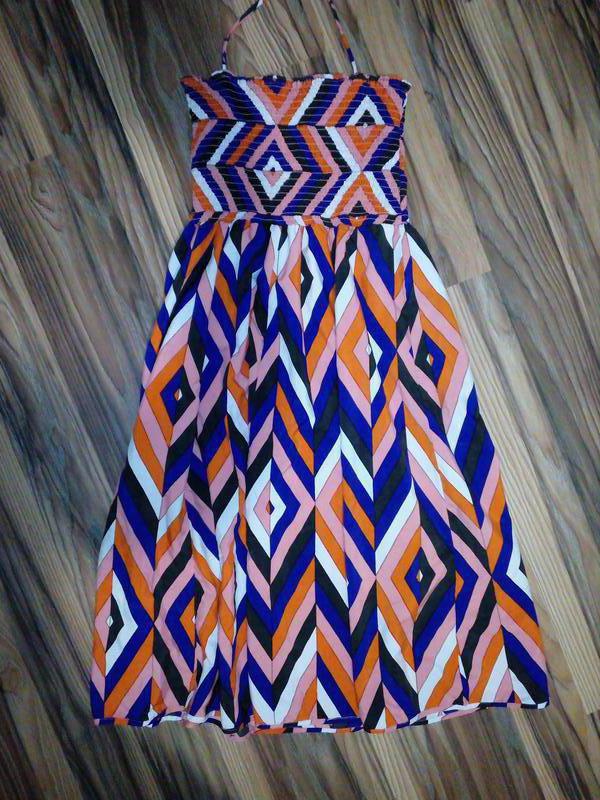 платье в отличном состоянии , завязывается на шее, очень легкое и необыкновенное , 100 % микрополиестр