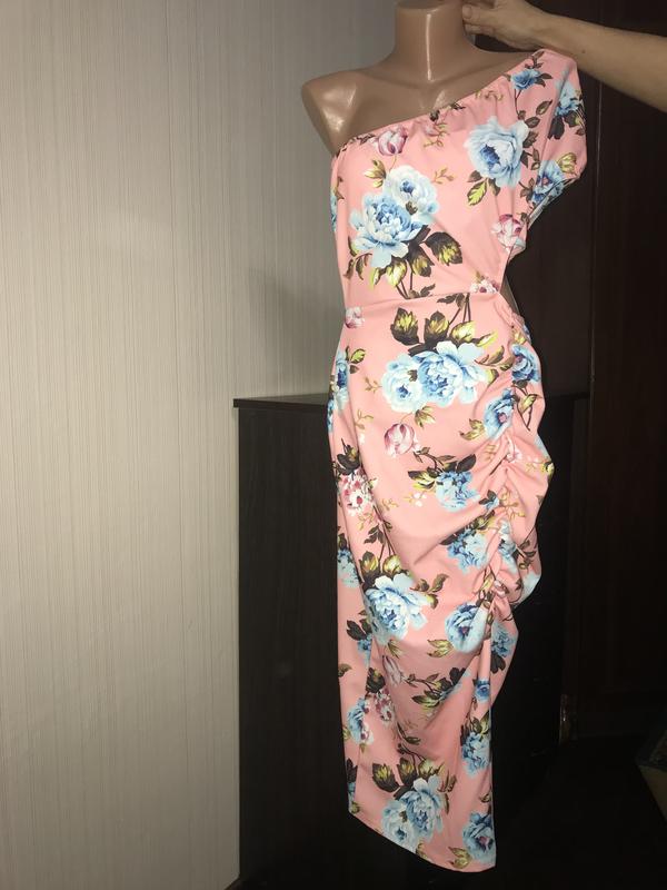 Розовое платье миди цветочный принт шикарное ретро винтаж